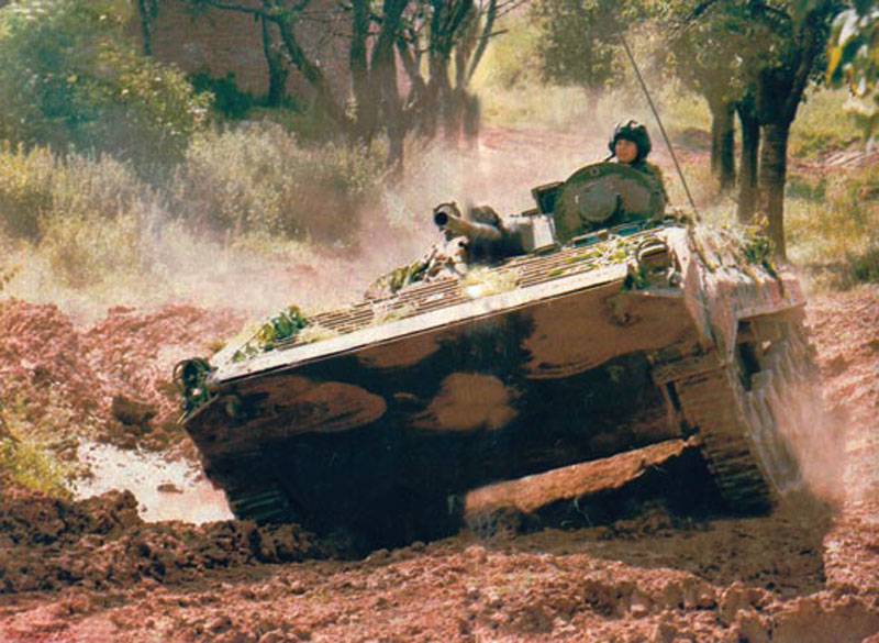 Behelfsmäßig, aber dem Gelände gut anpaßt getarnter BMP.