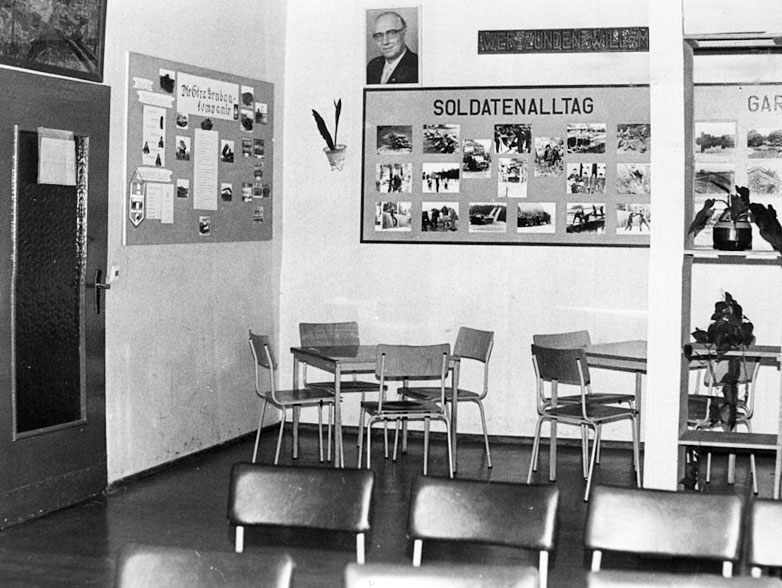 Blick in einen Fernsehraum einer Kompanie. Hier wurden in der Regel auch die monatlichen Politschulungen durchgeführt.
